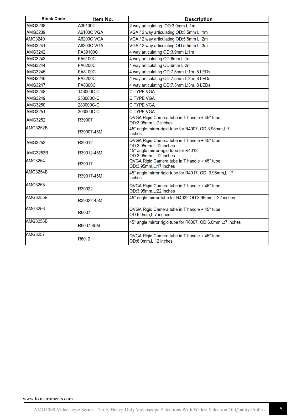 WIDE RANGE OF PROBES FOR X301,X501,X701 VIDEOSCOPE